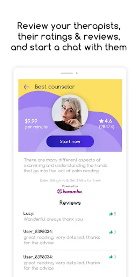 Review all experts, choose your favorite counselor, and start a conversation with him/her. Chat FREE for the first 3 minutes!