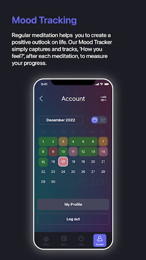 Thanks to mood tracker functionality the app encourages users to create a daily practice. Daily progress is automatically tracked in the app calendar along with how the person feels before and after they have completed a meditation.