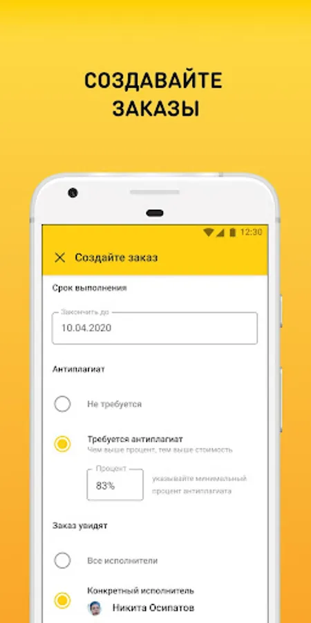 - notifications about new messages: instantly learn about the responses to your orders and the responses of the performers;