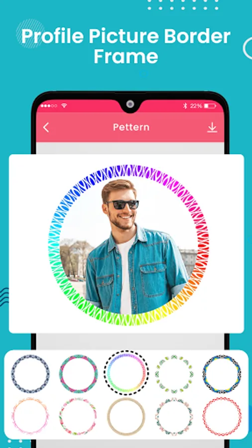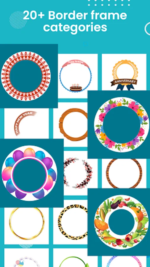 Profile Photo Border Maker app is easy to use and user-friendly. This app offers 20 different categories which includes more than 350 frame designs to choose from. Customize and add attractive round border frames on your DP picture.