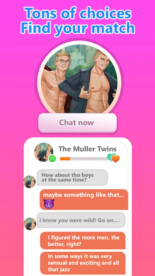 Find out about your secret fantasies in our interactive stories, swipe through hundreds of profiles, and enjoy our chapters to find your perfect match. Don’t feel shy - your choices are always the right ones!