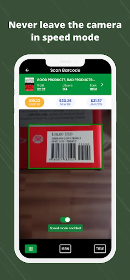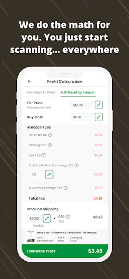 Amazon product scouting application for Amazon sellers. Scan and see potential profit for millions of books, DVDs, CDs, and many more. Leverage real time pricing data to realize perfect profits