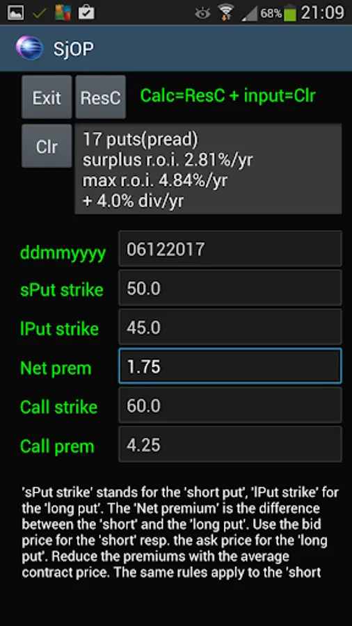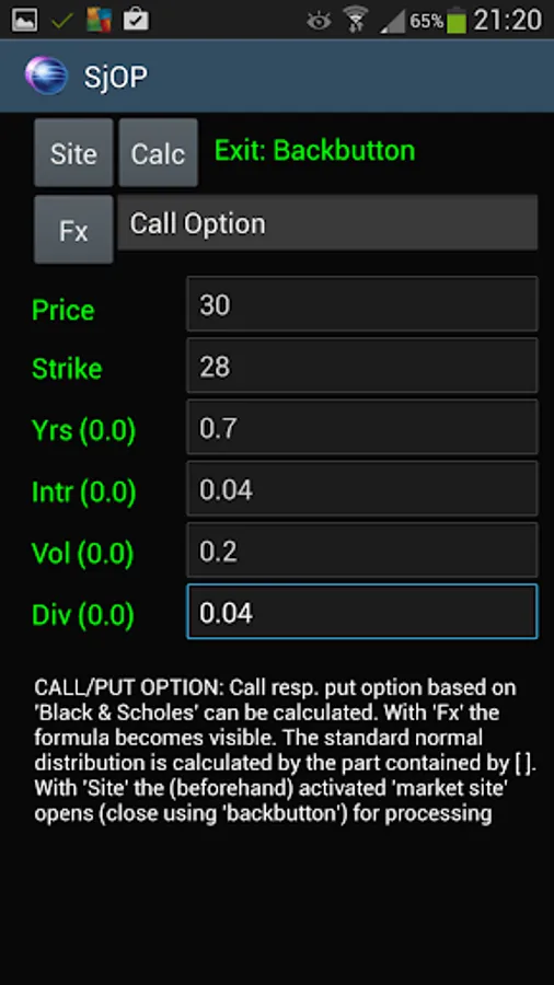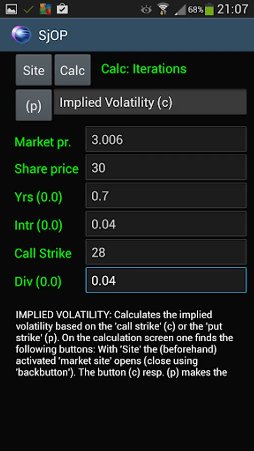 This "calculator" offers tools, to calculate "call" and "put" option premiums, implied volatility, dividend-yield and a "Stock Booster" program.