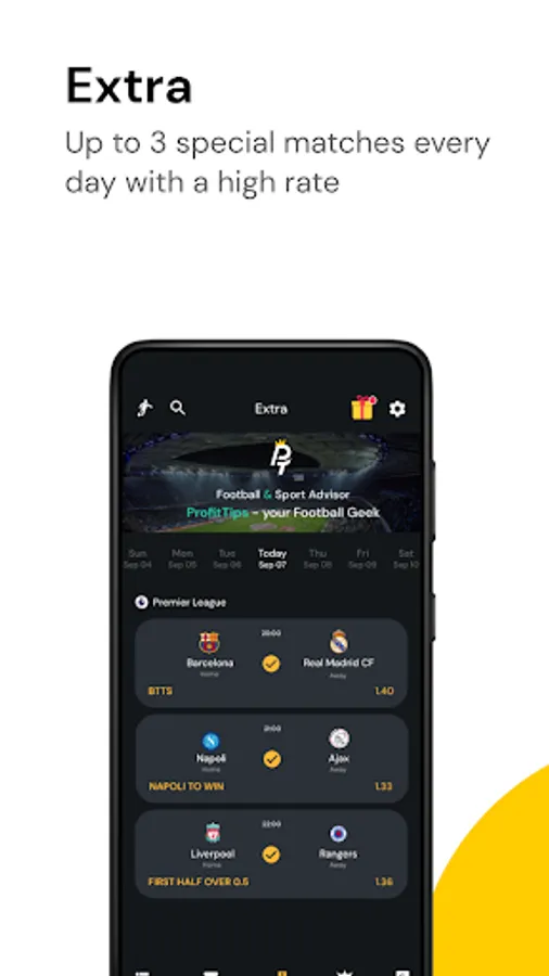 ProfitTips is an advisory tool for football and other sports analysis and predictions. Our tipsters give free daily access to our football fields. In our app, you’ll be able to find for free both livescores and additional match statistics, which we have chosen for the day.