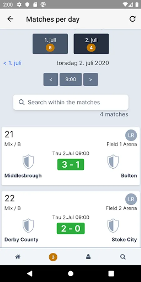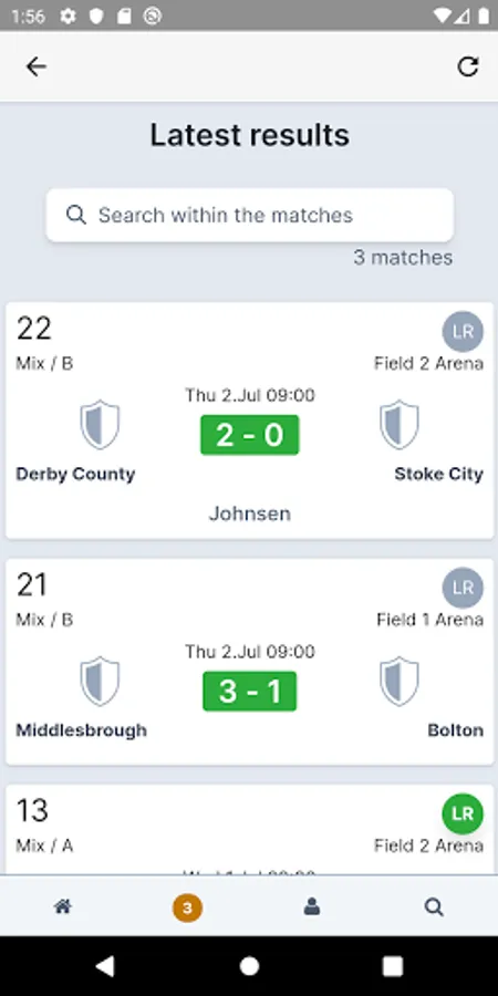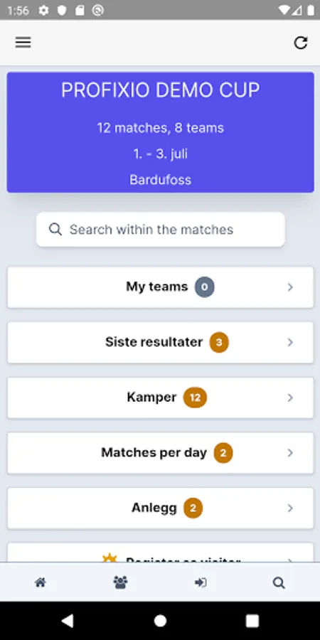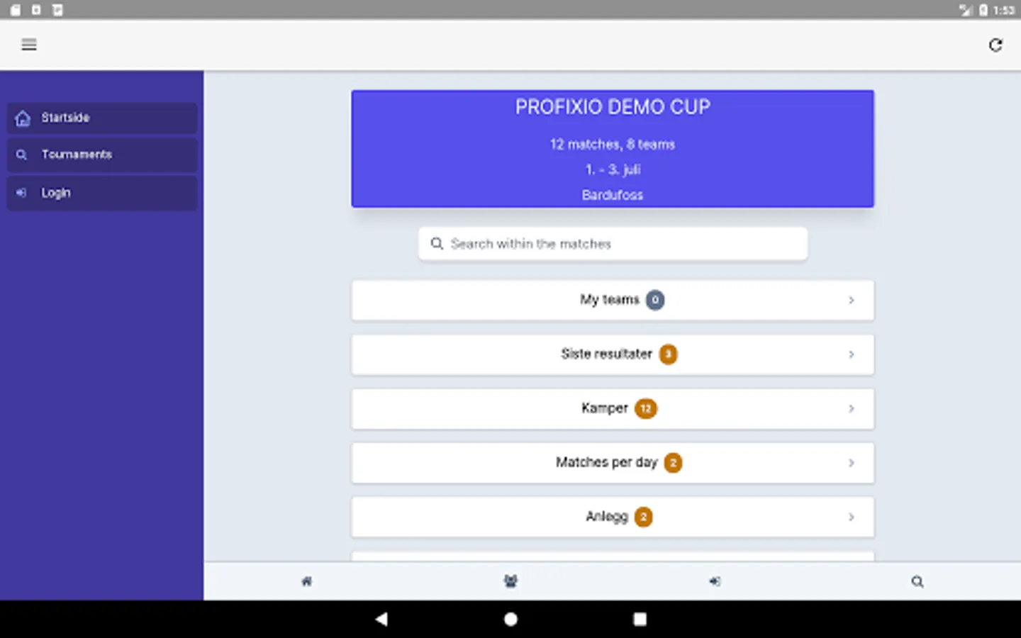 The Profixio app provides all matches with results and tables for all tournaments where Profixio tournament system is used.
