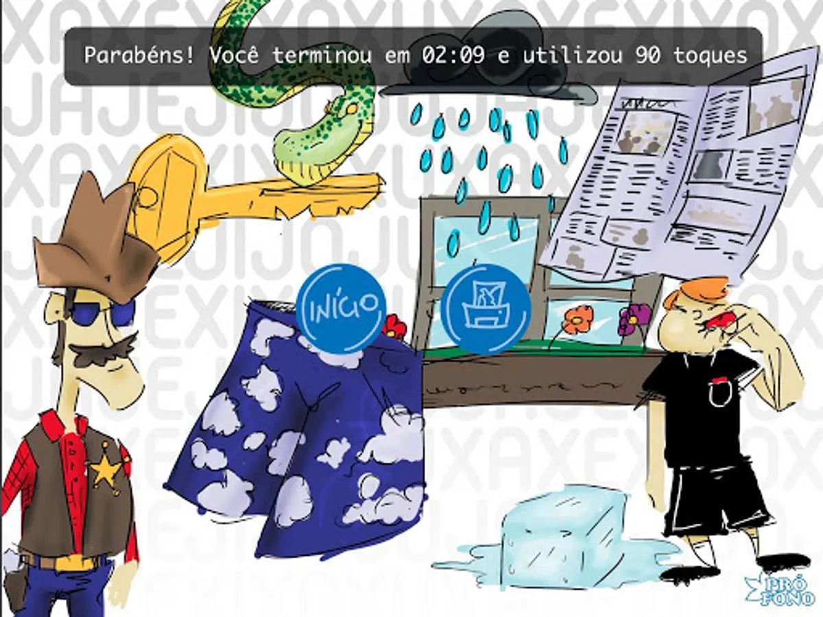 It is a memory game with syllable sounds opposed by the sonority trace (b / w; t / d; k / g; f / v; s / z; x / j), using the seven vowels ( a, é, ê, i, ó, ô, u) (phonemes x phonemes; phonemes x graphemes).