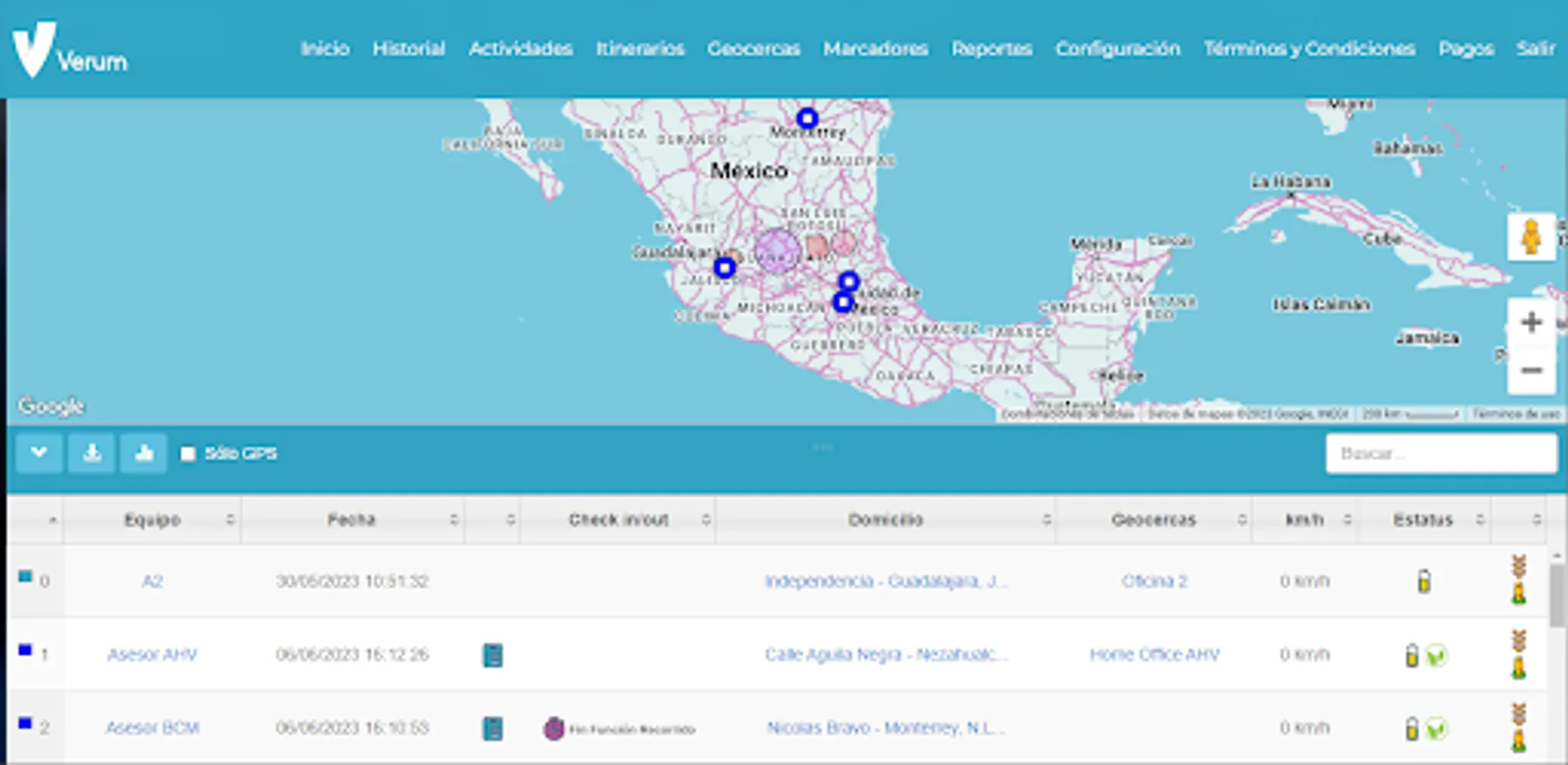 From the Verum web portal you have complete visibility of the activities of your work team in real time. You obtain history of activities with automatic location every 5 minutes and all the information sent by your collaborators through the forms, which are stored for 180 days within the portal.