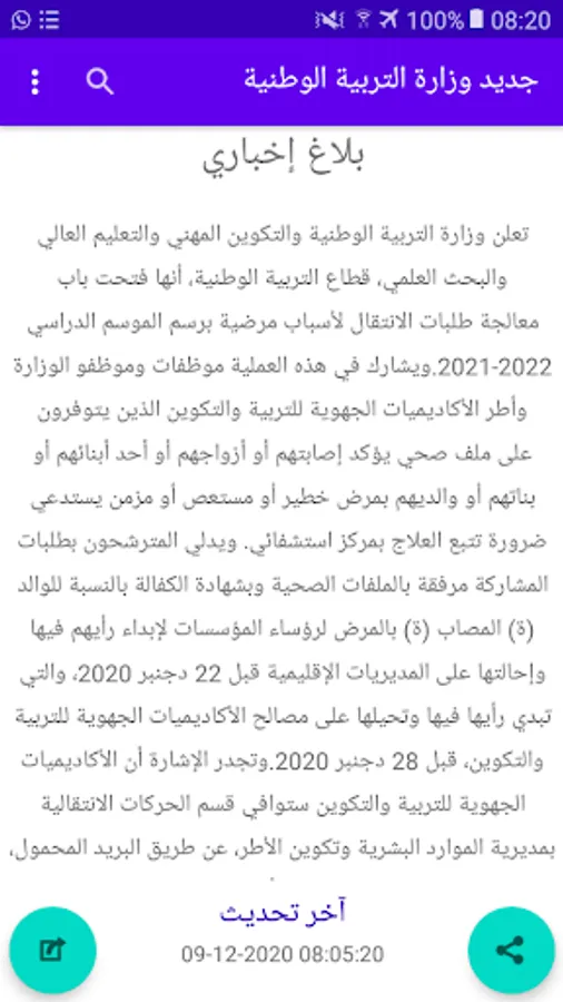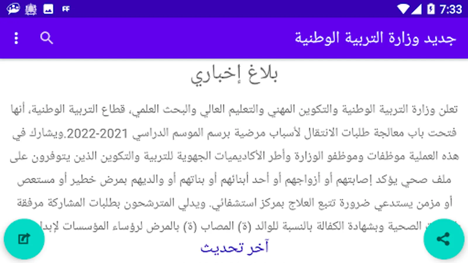 Be the first to know what is new in the Ministry of National Education, with the ability to search for previous topics