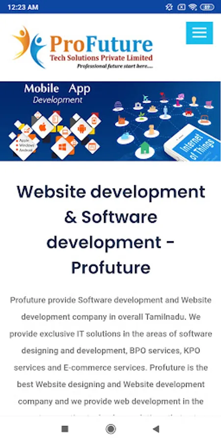 Profuture provide Software development and Website development company in overall Tamilnadu. We provide exclusive IT solutions in the areas of software designing and development, BPO services, KPO services and E-commerce services. Profuture is the best Website designing and Website development company and we provide web development in the next-generation technology solutions that set standards for industry expertise, innovative creations and global-scale quality.