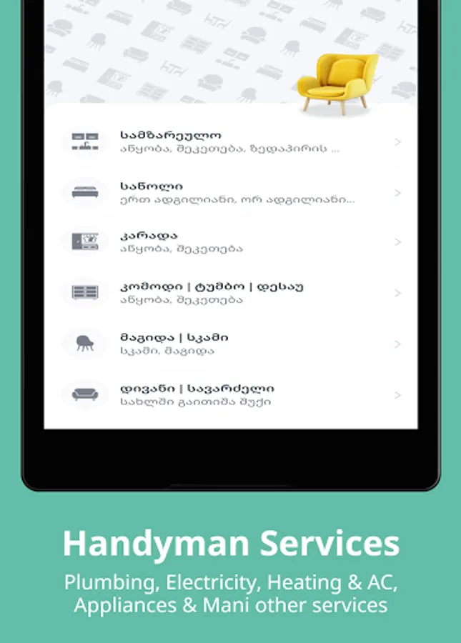 დაზოგე დრო, გამოიძახე ხელოსანი ჩვენი აპლიკაციის საშუალებით და მიიღე ხარისხიანი სერვისი.