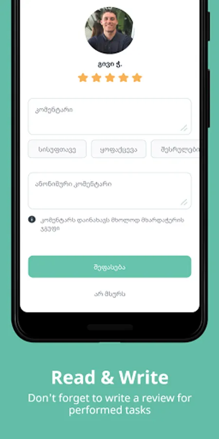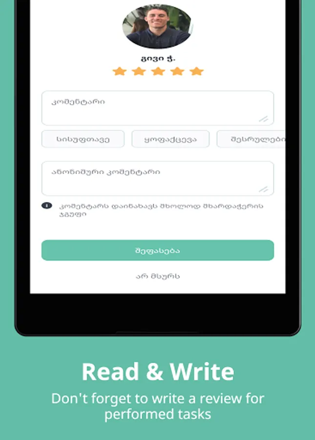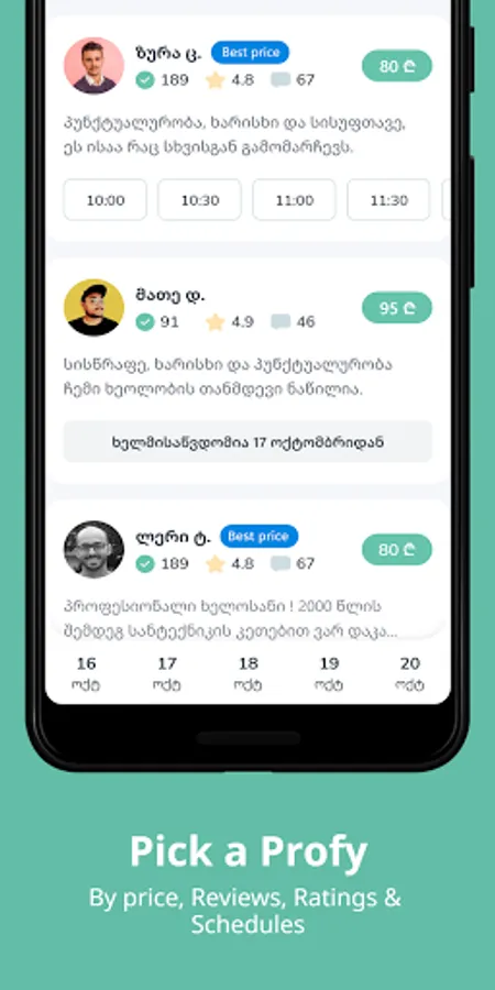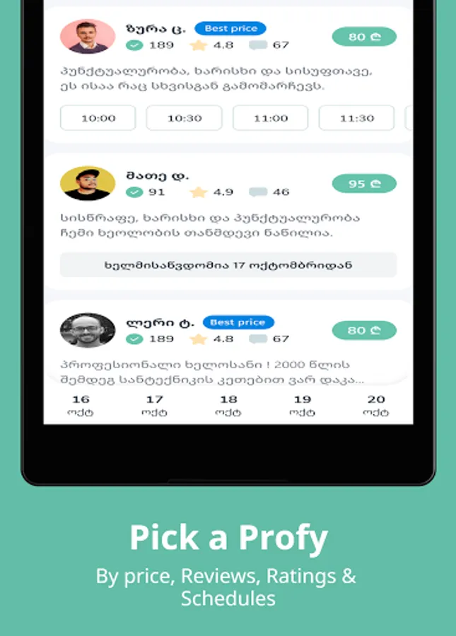 • აირჩიე ოსტატი ფასის და რეიტინგის მიხედვით