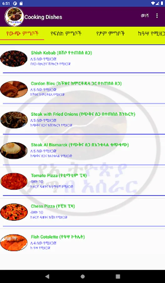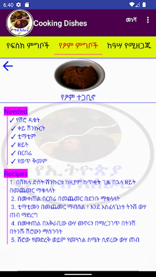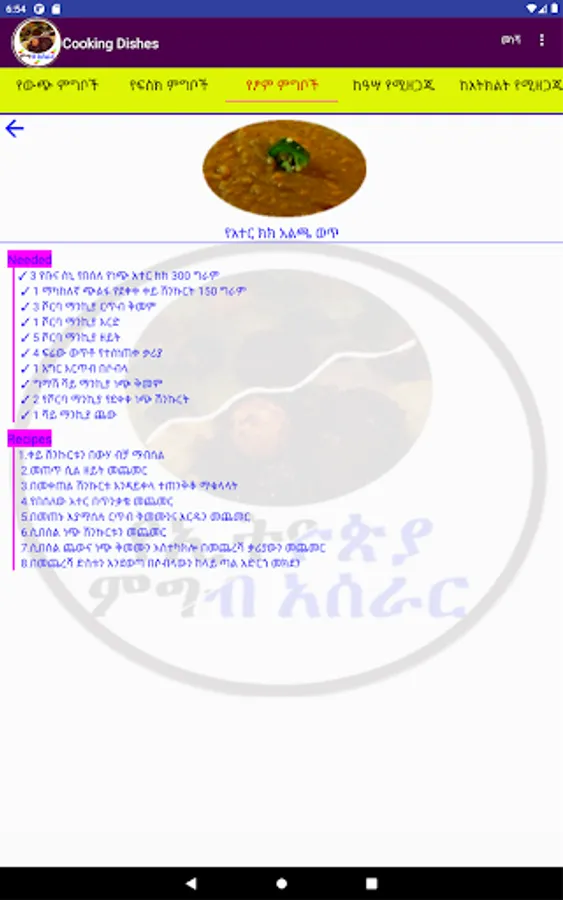 This App is used to guide you on how to cook dishes. Currently, the number of recipes is few but planned to include some more in different categories. fasting, non-fasting, Cake, Fish, European, etc. You can select one from the list and display the details including the ingredients and the method of how you can cook.