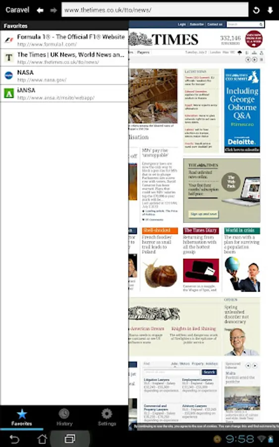 6) Use the tabbed sidebar for quick and easy access to your favorite sites and to the archive of your history.