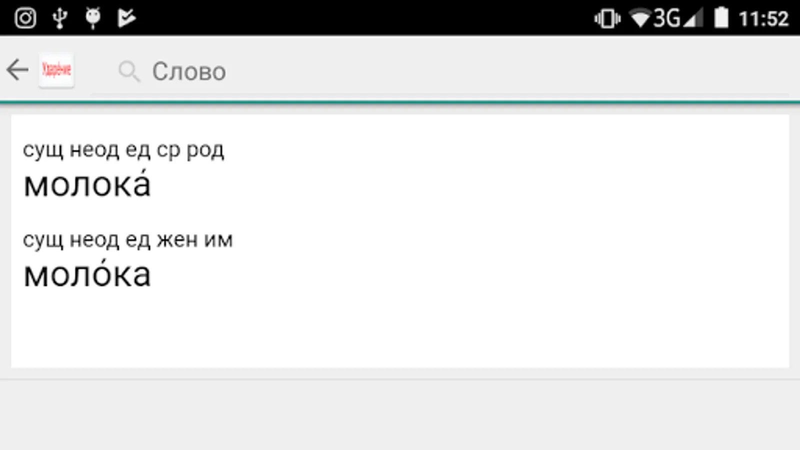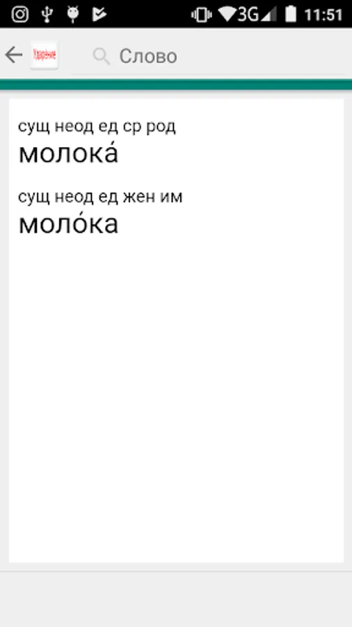 For each word, morphological information is provided, which allows you to navigate in words.