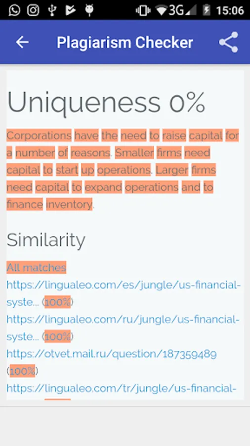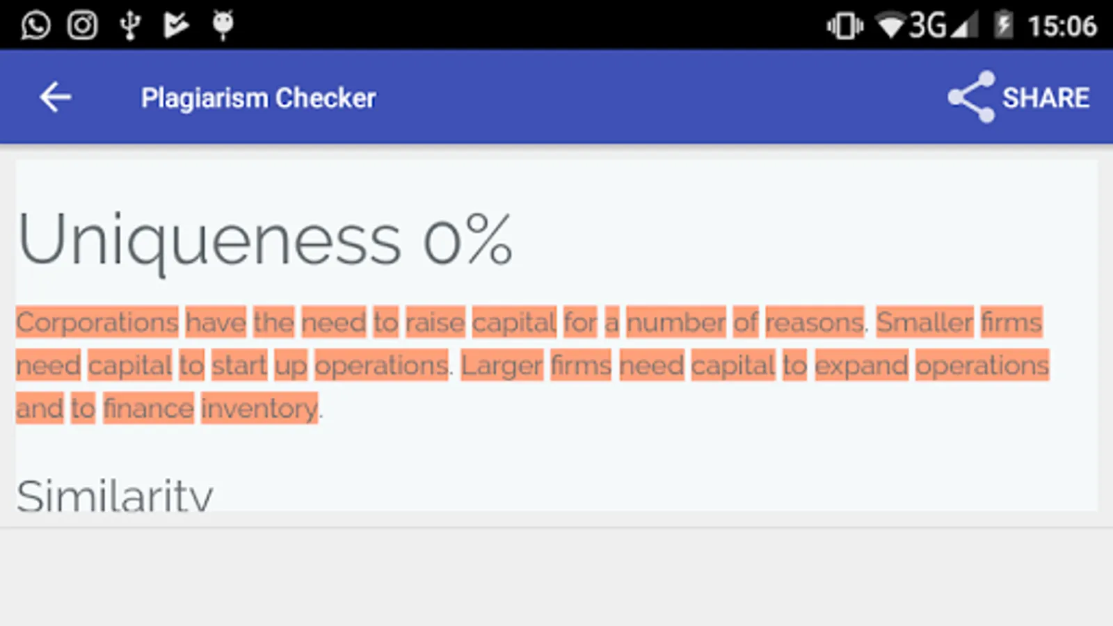 Plagiarism Checker is a mobile application designed to help users detect plagiarism in their written work. It is an efficient tool for students, teachers, and professionals who want to ensure the originality of their work and avoid any potential academic or legal consequences of plagiarism.