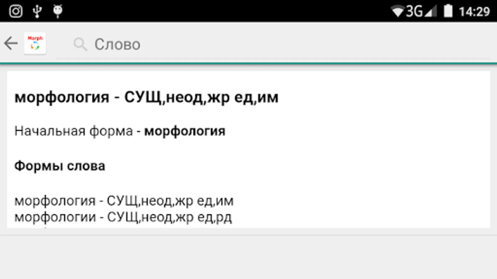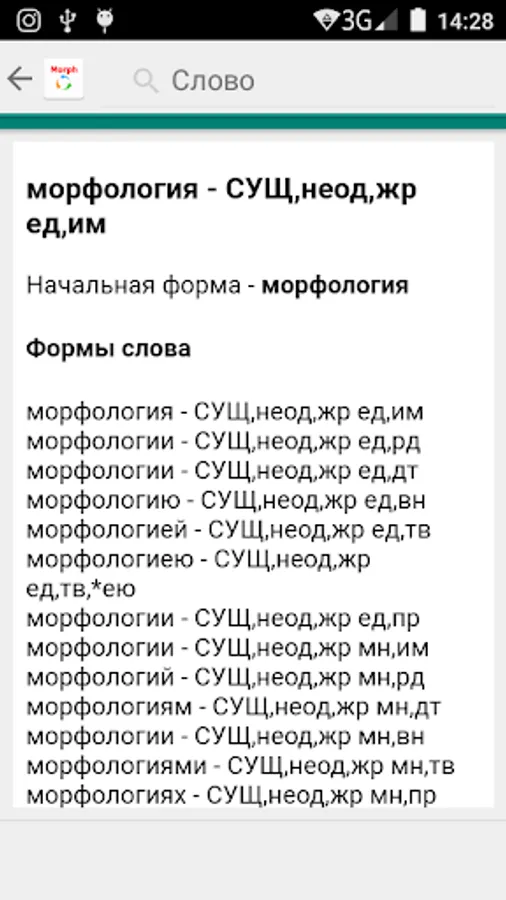 Text guide Morphology determines morphological characteristics, shows the initial form and variants of the forms of the word.