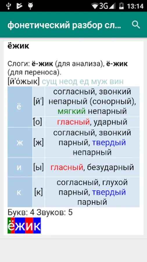 Text guide Phonetics allows you to make an automatic phonetic (sound-letter) parsing of a word in the Russian language.