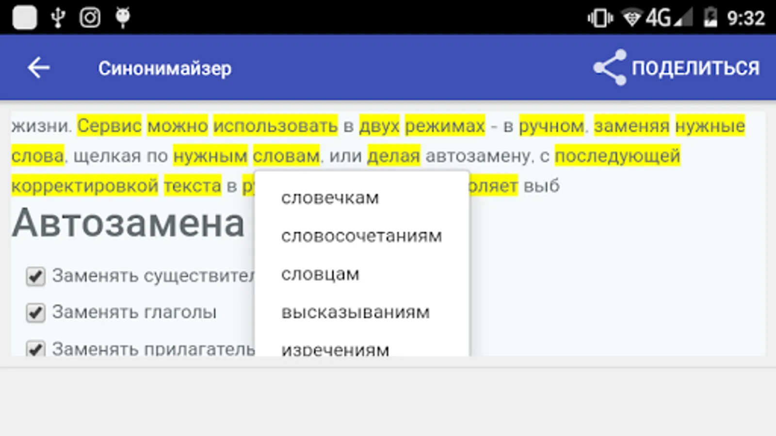With the PRO version, up to 10 thousand text symbols and up to 20 synonyms for each word will be available.