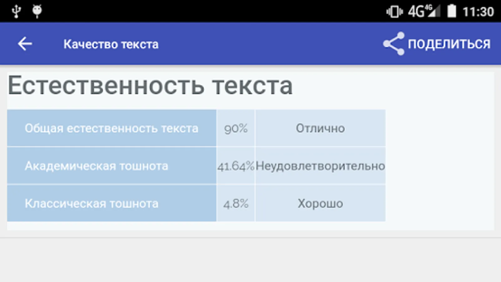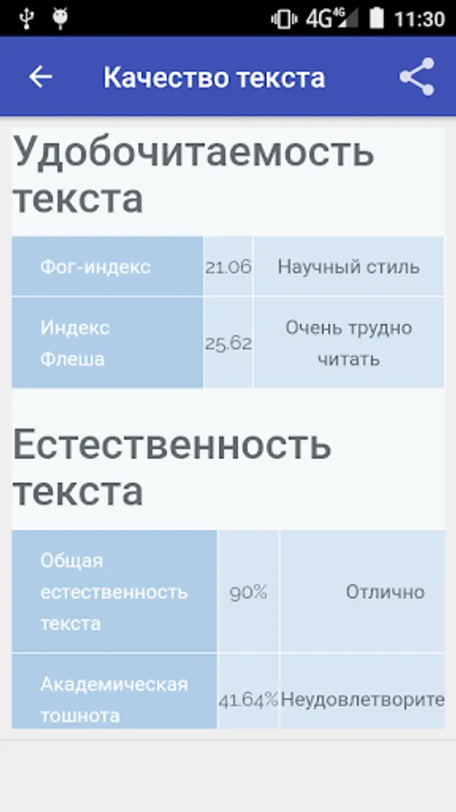 Application Tekstovod. Quality for evaluating the text in Russian using the coefficients of naturalness and readability.