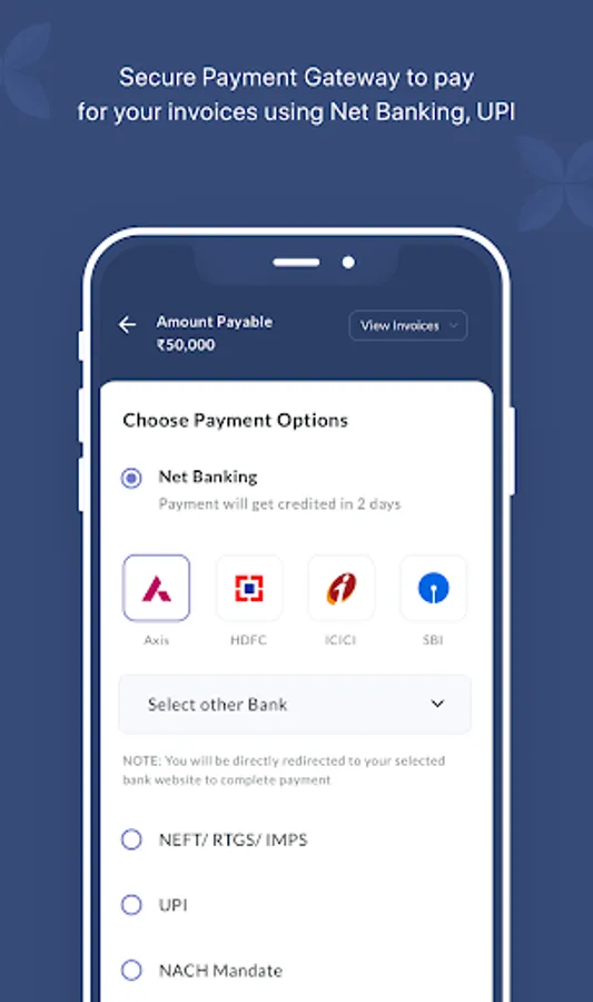 Real-time Analytics: You can view real-time business analytics and track your business performance through the app, and improve your business efficiency significantly with valuable insights like visibility of repayment trends, available credit limits, earned CD, view and download account and ledger statements etc.
