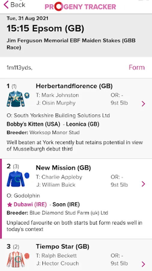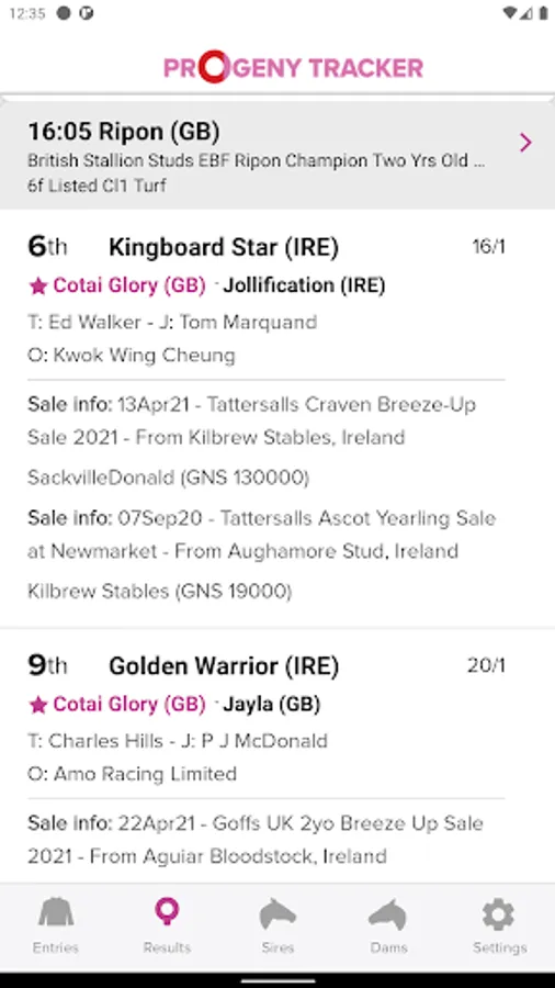 Progeny Tracker is the first horse tracker of its kind and brings a unique new product to the bloodstock industry. The Progeny Tracker allows you to track unnamed horses by tracking any sire and dam in the world. The app notifies you of any runners by your tracked sires/dams and full racecards are visible within the app, along with in-depth horse profiles detailing race record and pedigree. The app also brings you sales information for all progeny of your tracked sires/dams. The app is perfect for tracking young horses sold at the sales (by tracking the dams) and for keeping up-to-date with the progress of first season sires, and much more. The Progeny Tracker app is brought to you by Racing Post Bloodstock and sponsored by Goffs.