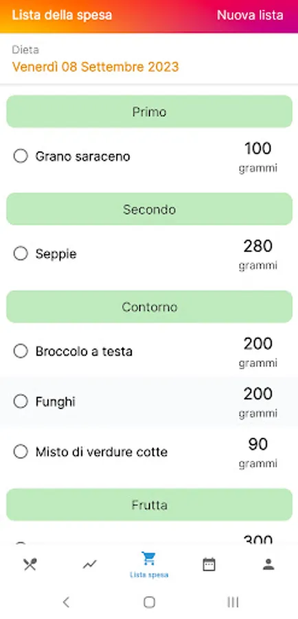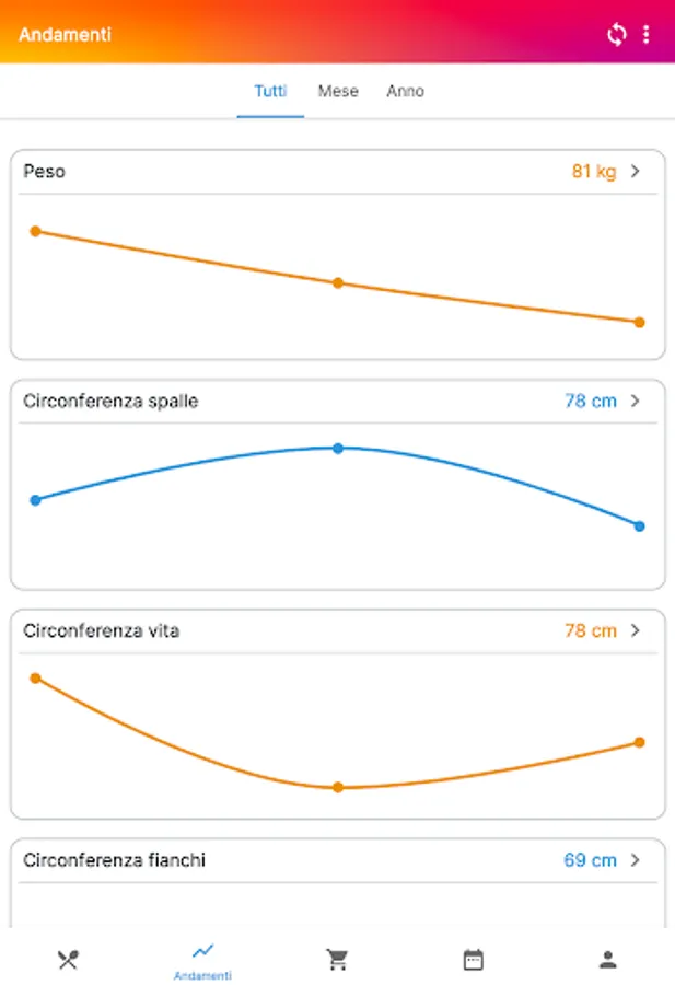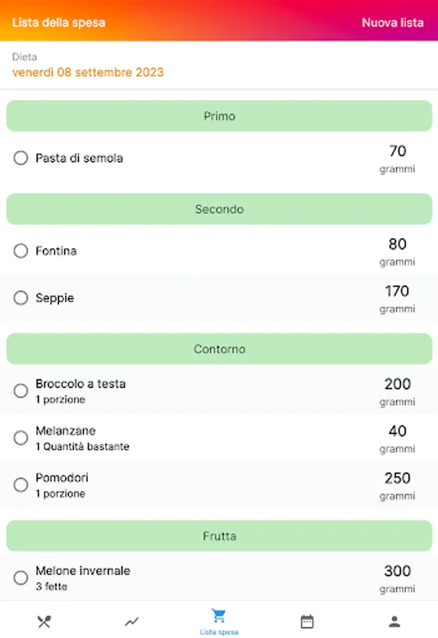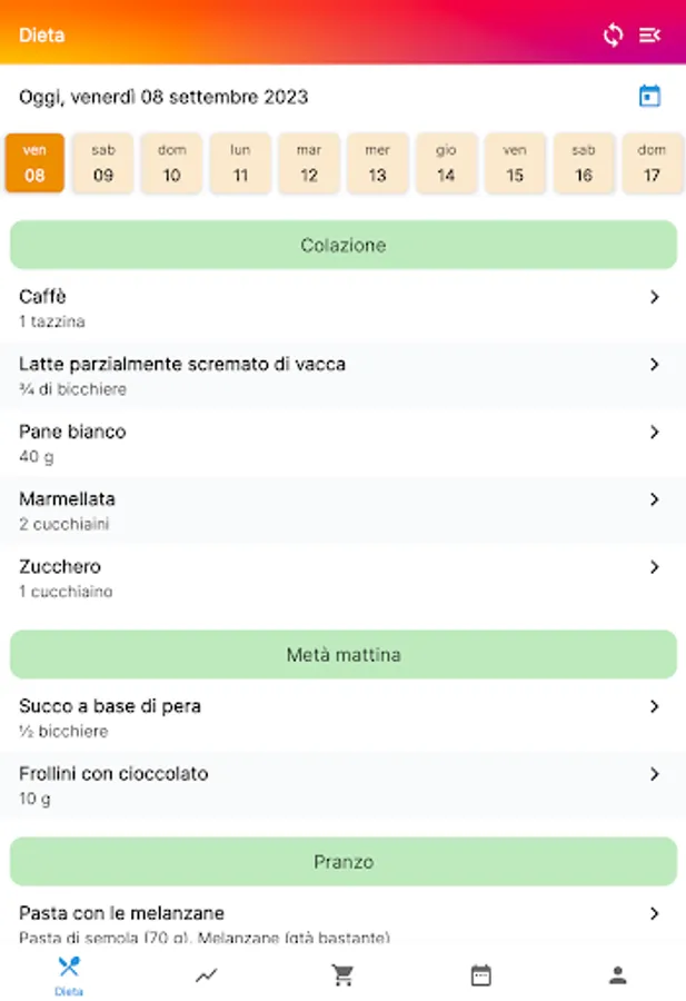 You will be able to view all the menus assigned to the various diet days, generate a shopping list, see the trends in your measurements, share your diets and receive notifications from your nutritionist about your appointments.