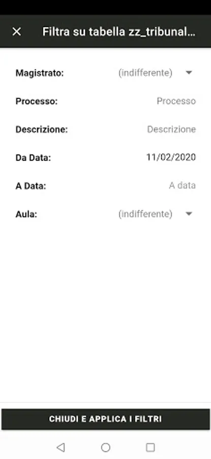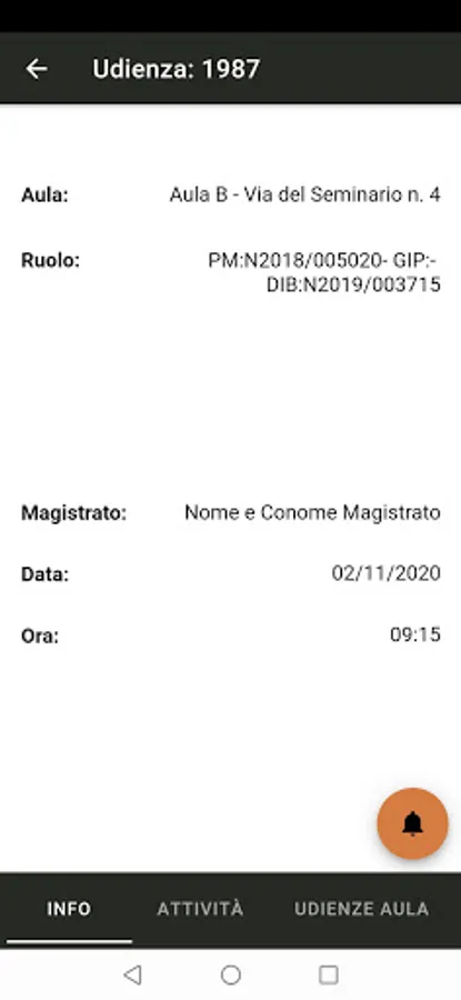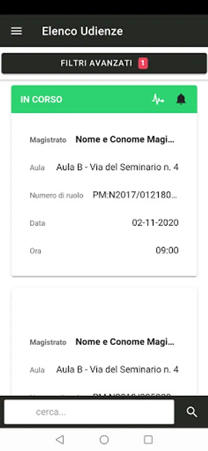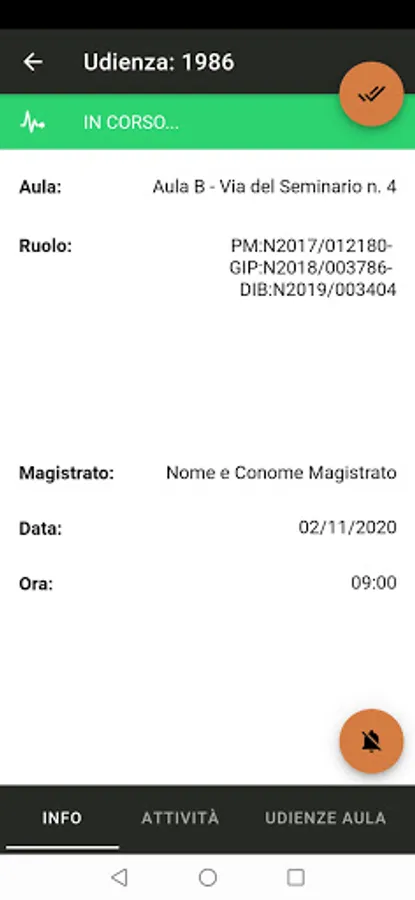 Application dedicated to legal operators that allows you to know in real time the time and location of the hearings in progress as well as the status of the same thus allowing, through a system of live notifications, to avoid overcrowding in the judicial offices.