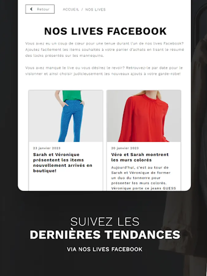 The store has several hundred products including trendy accessories and a selection of products from fifteen major brands: B. Young, Karv, Guess, Vero Moda and much more! Shopping at VICKIE means being aware of the latest sales at all times with push notifications on your cell phone. Speaking of sales, we dedicate an entire section of our app to our discounted products, so there's something for everyone.