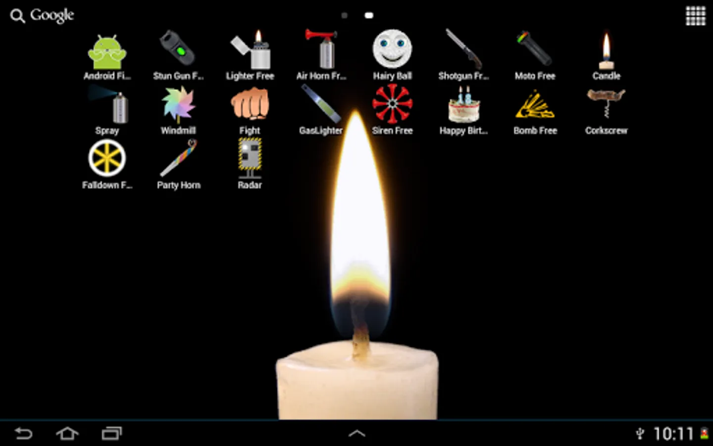 Enjoy the benefits of candlelight without the dripping wax and risk of burning your Victorian manor to the ground. With this live wallpaper for your Android home screen, you can light the pages of your favorite Gothic romance novel, look for your lost keys in the dark, add atmosphere to a candlelit Christmas ceremony, walk down spooky hallways with maximum creepiness, hold the candle high at concerts like a lighter, and sate your pyromania without risk.