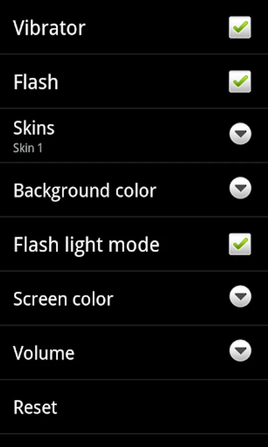 A short touch produces a brief, blinking light from your flash. A longer touch turns the flashlight fully on. You can select background colors for the app's home screen, as well choose the color the home screen will display when being used as a flashlight.