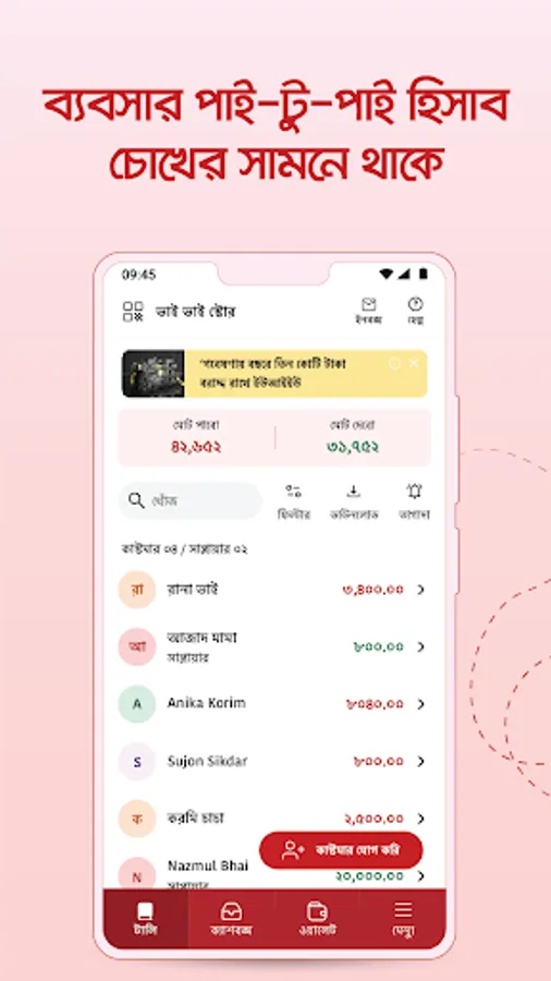 This Talikhata app is trusted by 5 million traders across the country. Talikhata app's transaction service is licensed from Tali'pay Bangladesh Bank. So it is 100% safe.