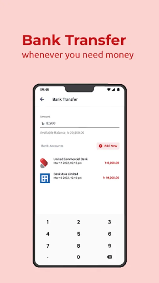 Add your bank account to TallyPay wallet. You can add money to your wallet or transfer money to the bank account easily.
