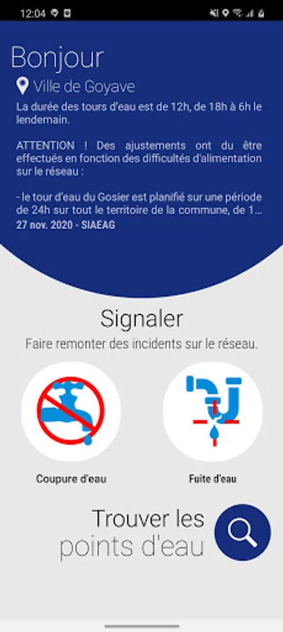 Water is life and everyone should have access as needed. Thanks to this application, you will be able to know the latest information from your operator, but also to report incidents of cuts and water leaks on the network.