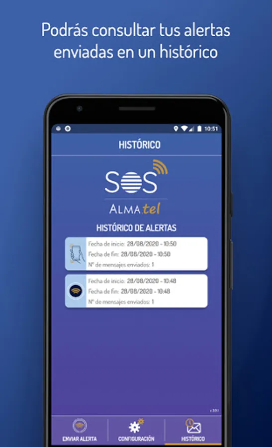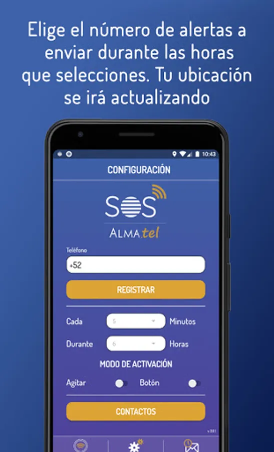SOS Button AlmaTel is an application for AlmaTel clients that facilitates the sending of emergency short messages (SMS) to contacts or phones that you configure, specially designed for use in alarm situations just by shaking the phone.