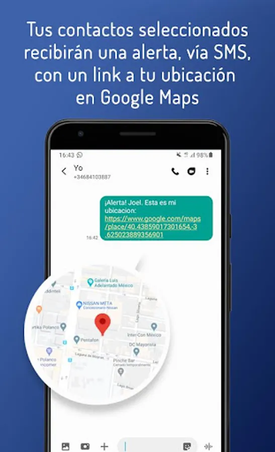 - Personalized configuration: You can add the contacts or authorities to which to send your alerts directly from your phone's address book or by including their data in the application.