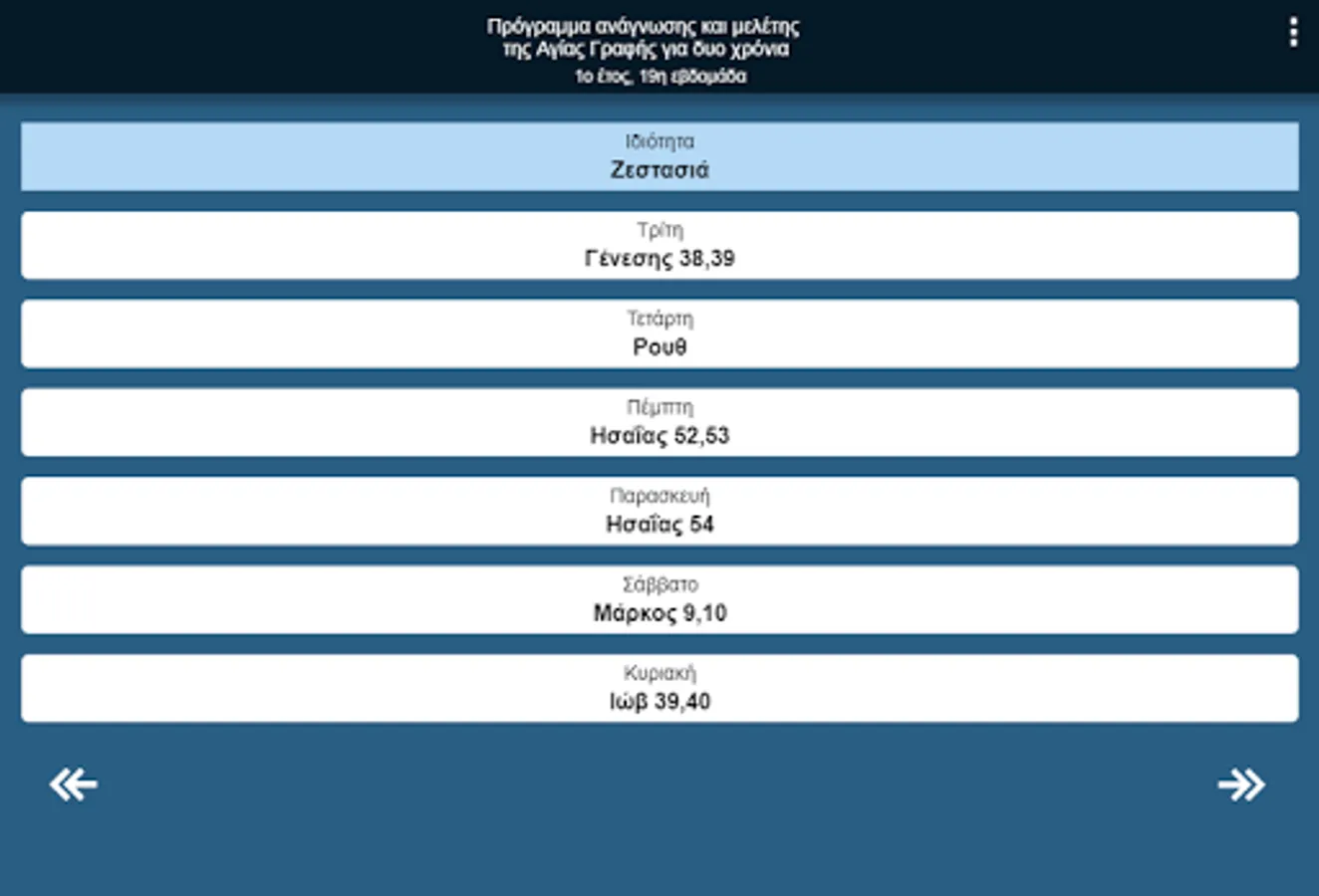 The program is divided by subject, for a fixed reading that leaves time for reflection, with particular emphasis on prophetic books.