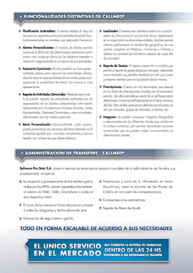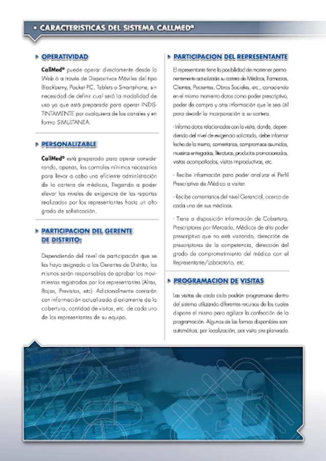 CallMed is prepared to operate considering, only, the minimum controls necessary to carry out an efficient administration of the portfolio of doctors, being able to raise the levels of demand of the reports made by the representatives to a high degree of sophistication.
