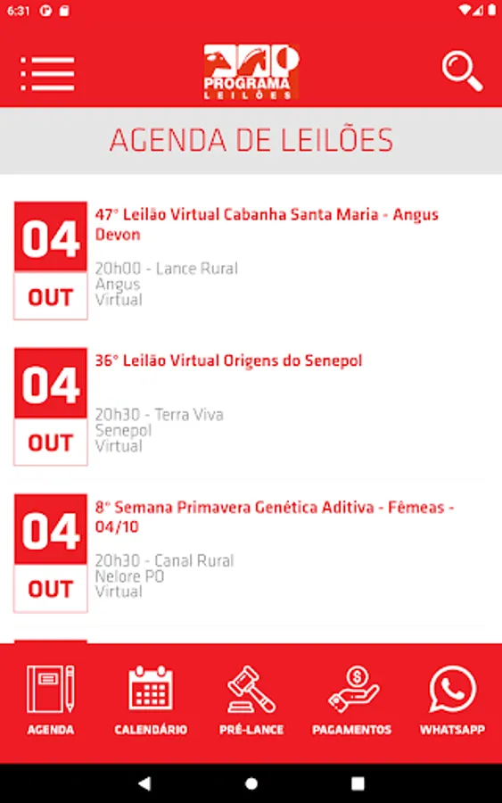 Get access to the complete agenda of auctions, news from the agricultural world and all the facilities on the site, in the palm of your hand!