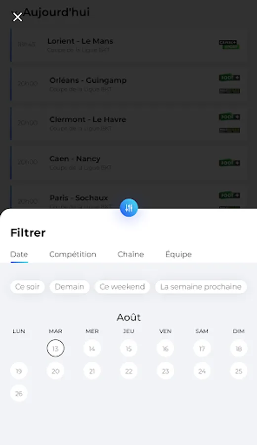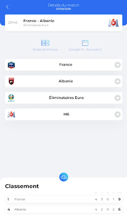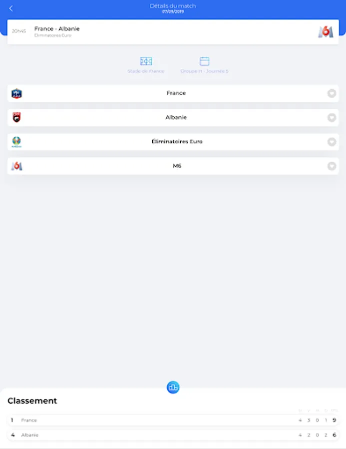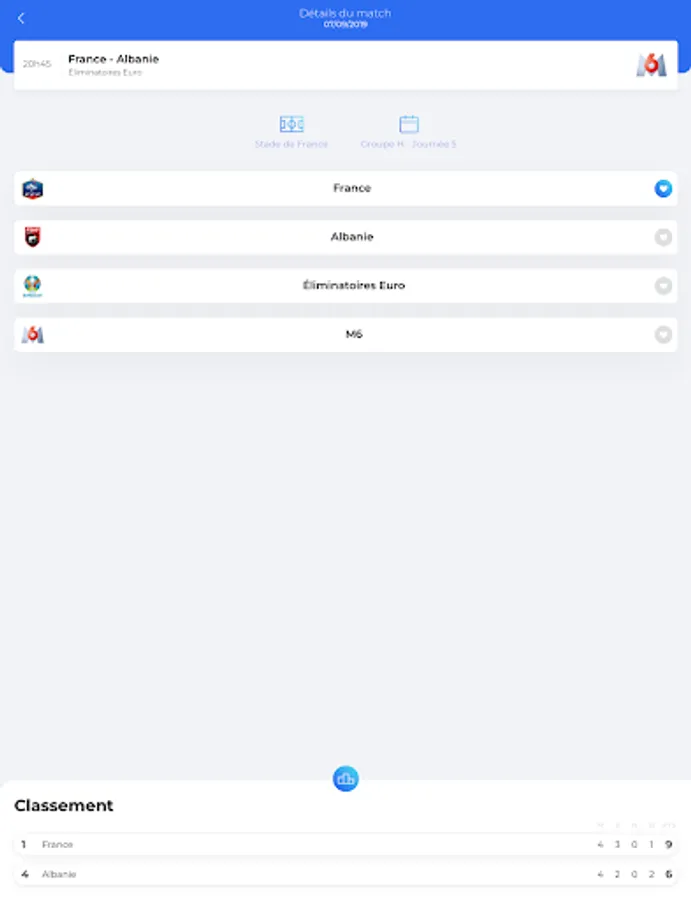 The application answers all your questions and allows you to easily access a complete TV agenda with the schedules for all the football matches broadcast on French TV channels.