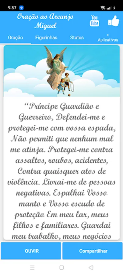 “Prince Guardian and Warrior, Defend me and protect me with your sword, Let no harm come to me. Protect me against assaults, robberies, accidents, Against any acts of violence. Get rid of negative people. Spread Your mantle and Your shield of protection In my home, my children and family. Keep my job, my business and my goods. Bring peace and harmony. So be it. Amen."