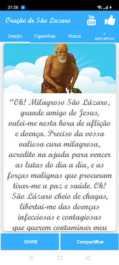 “Oh! Miraculous Saint Lazarus, a great friend of Jesus, I made use of this hour of affliction and sickness. I need your valuable miracle cure, I believe in helping to overcome the struggles of everyday life, and the evil forces that seek to take away my peace and health. Oh! Saint Lazarus full of wounds, free me from infectious and contagious diseases that want to contaminate my body with disease. Oh! St. Lazarus, resurrected by Christ, enlighten my steps, so that wherever I walk I find no traps or obstacles. And guided by your light, deflect me from all the ambushes prepared by my opponents. Oh! Saint Lazarus, guardian of souls, spread your hands right now over me, getting rid of disasters, dangers against life, envy and all evil works. Oh! Saint Lazarus, who ate the crumbs that fell from the table of the rich, bless my family, my daily bread, my house, my work, curing all body and spiritual illnesses, covering myself with the veil of the prosperity of the love, health and happiness. May my family stay together. Through Christ our Master, in the strength and Light of the Holy Spirit. Amen."