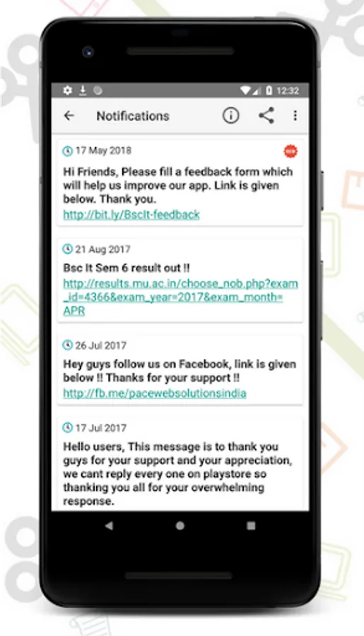 ⦁ Notification: Get notification of university news and announcements like exam time table, results, etc.
