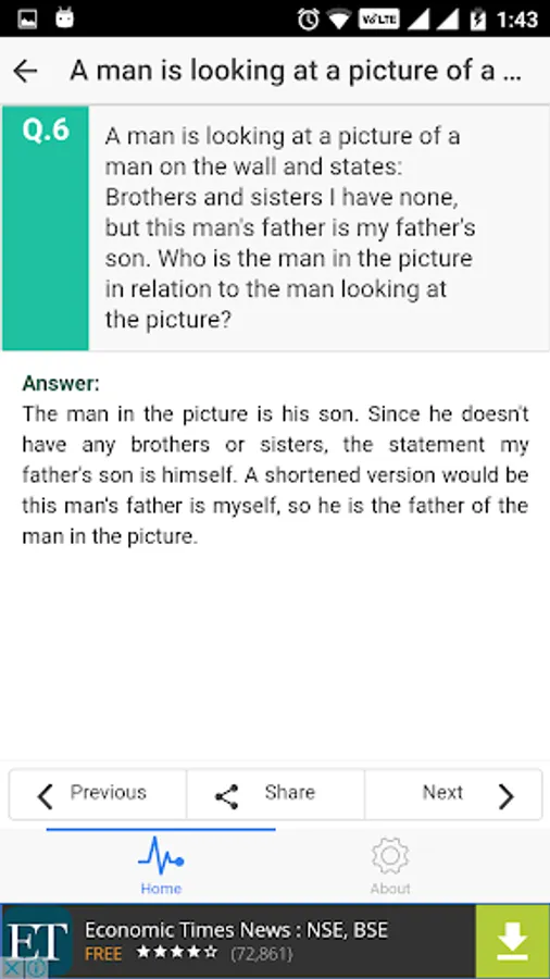 Tips: The application will first show the Brain Teasers (problem) only. Take your time to solve the problem by yourself first. After that you can click on the answer button to see the actual answer.