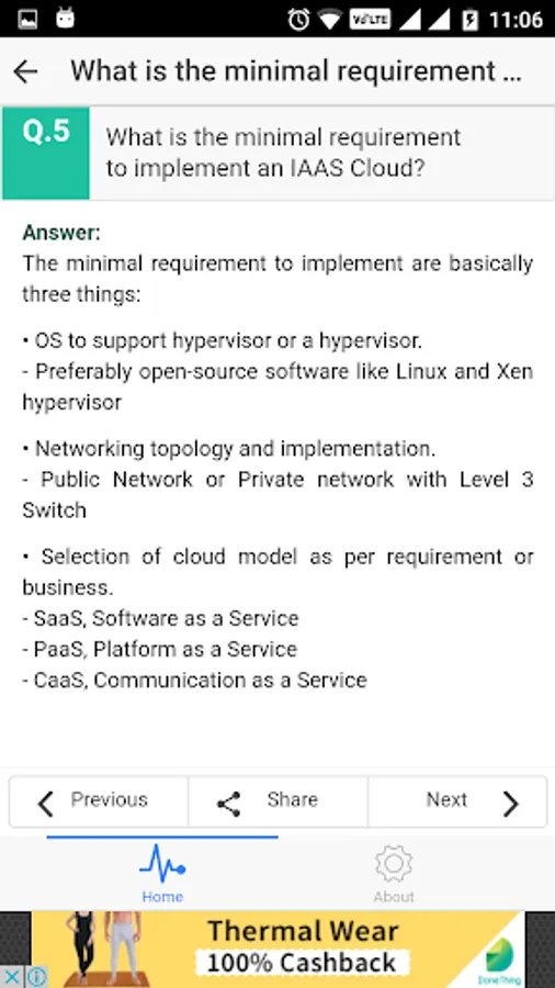 This app is unique in that it helps you master the most commonly asked questions for Cloud Computing, instilling you with the confidence that you need to endure the most difficult of interviews. Application covers all Wide range of question covering different aspects of Cloud Computing.
