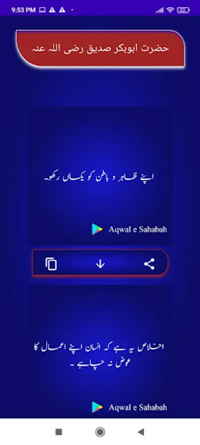 Aqwal e Sahabah is a Best Aqwal e Zareen in Urdu Images app, Aqwal e Sahabah App consist of Best Quotes and Status in Urdu. You Can Share, Copy and Download Best Quotes of Sahabah Akram.
