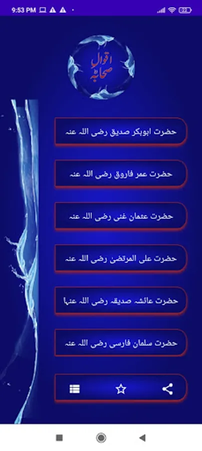 Aqwal e Sahabah is an app in which Aqwal e Zareen in Urdu both in text and images are available. Aqwal e Sahabah is an Urdu Best Aqwal e Zareen app in which you can copy best quotes in Urdu and also you can download the Quotes and status in both image and text. In Aqwal e Sahabah app you can also change the background of the Quotes. Aqwal e Sahabah consist on Sunehray Aqwal of Hazrat Abu Bakar Siddique, Hazrat Umer Farooq, Hazrat Usman Ghani, Hazrat Ali Al Murtiza and many other Sahabah Akram's Aqwal. Aqwal e Sahabah app contain the Aqwal e Zareen in Urdu images offline as well. In this Urdu Best Aqwal e Zareen app you can copy the text of Quotes and you can download the Quotes in Urdu as image and you can change the background image of the Quotes. In this Quotes creator app, you can share Quotes and statuses. This is a Quotes offline app and as well as you can use it as Quotes online.