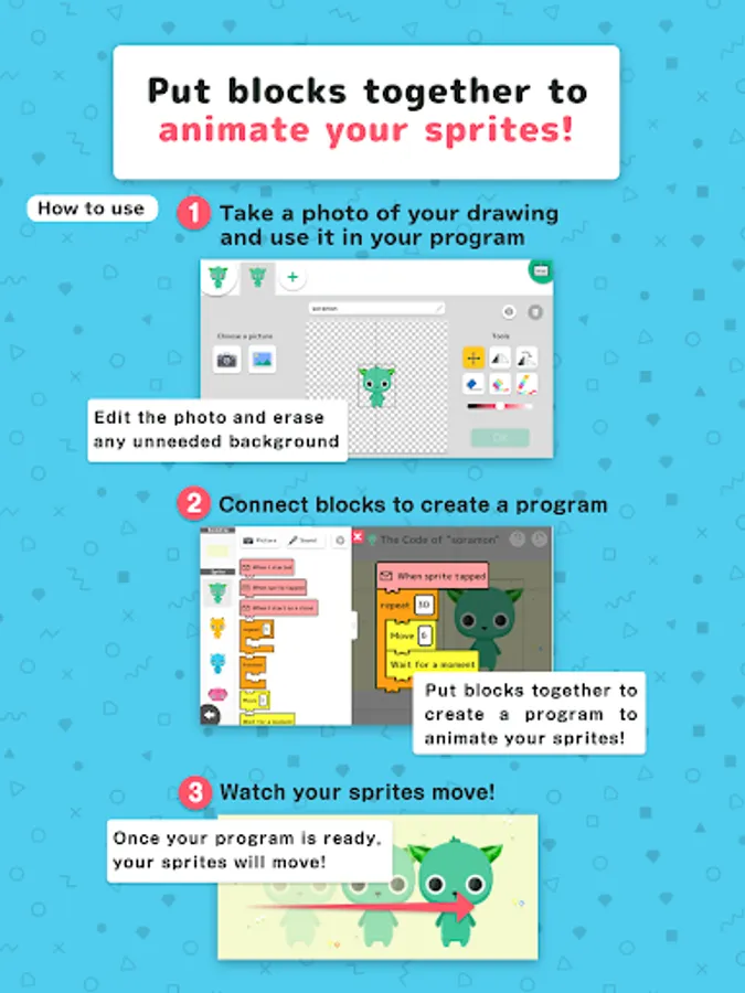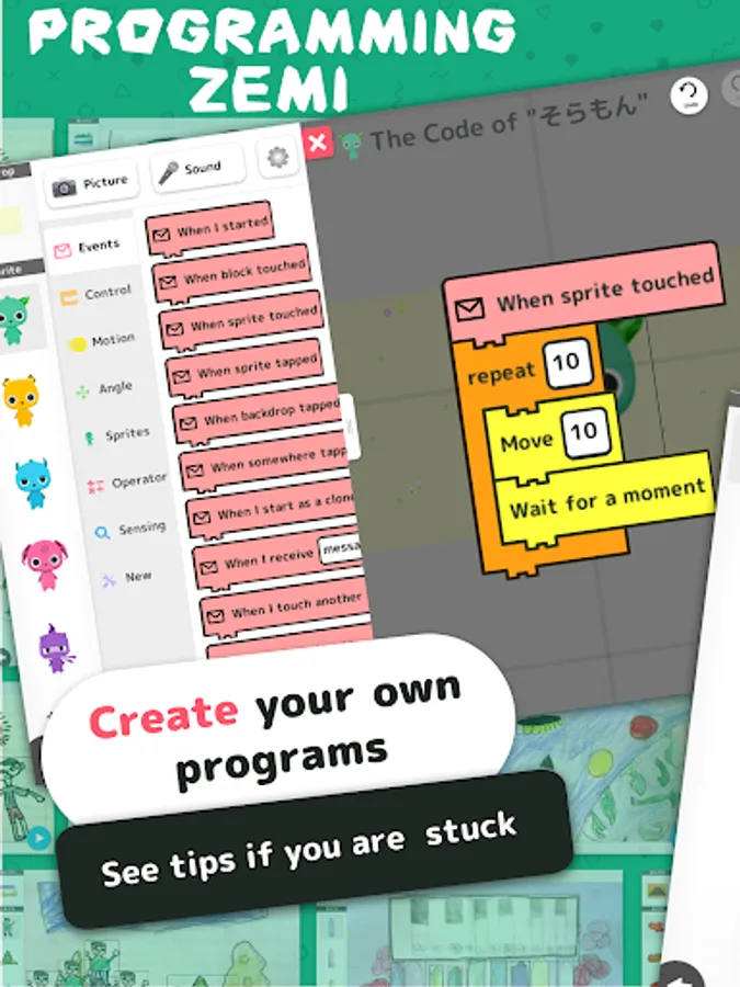 - Together, the functions of this app cover everything from the basics to advanced programming concepts, and enable children to create their very own programs