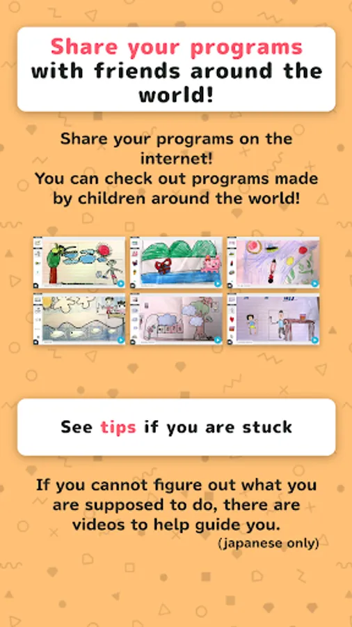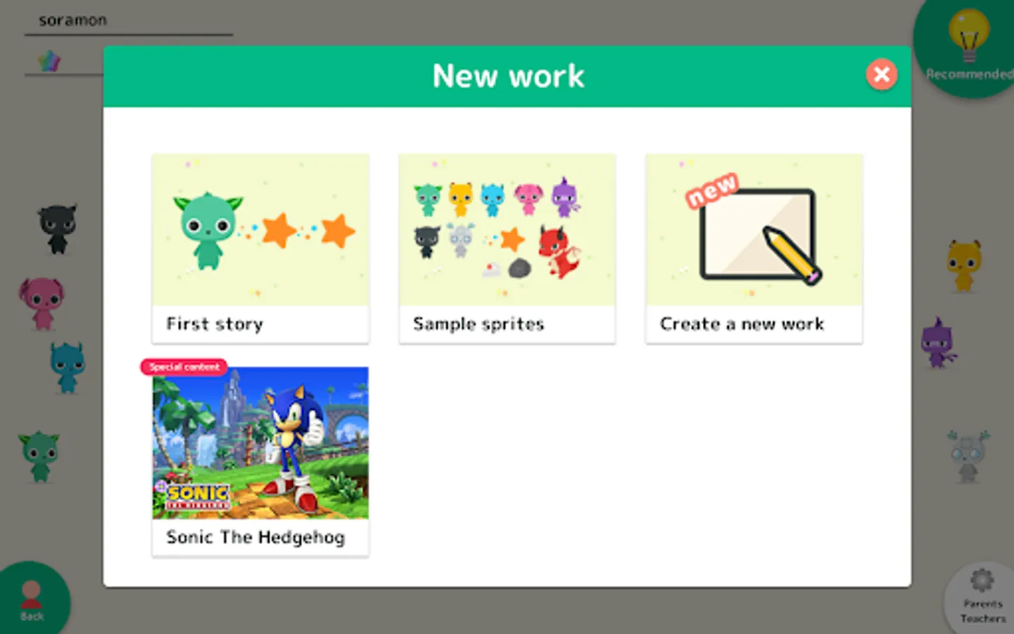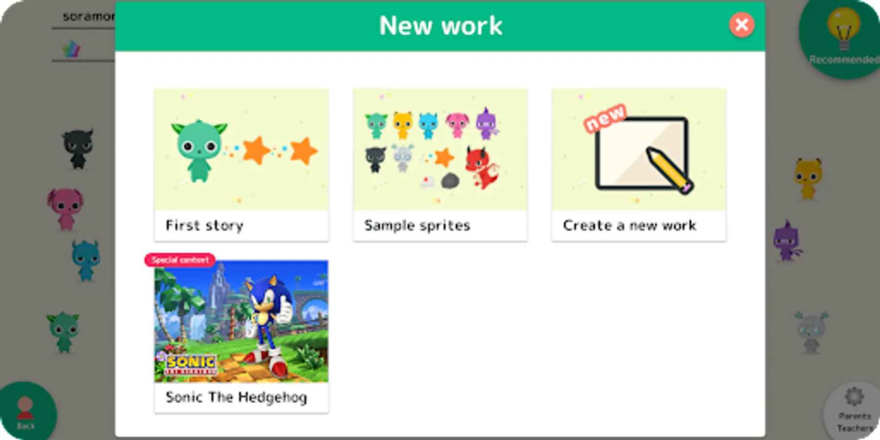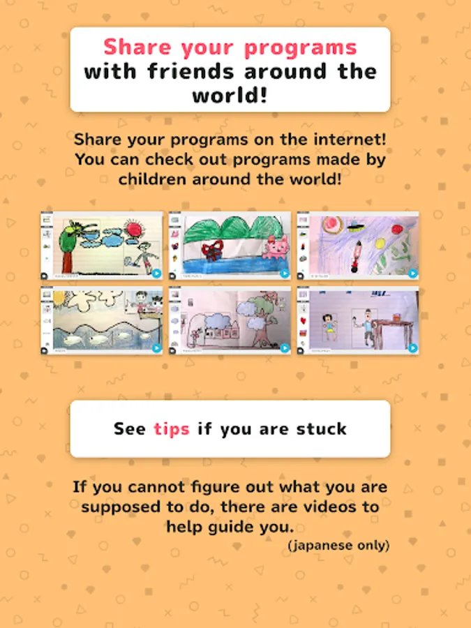 - Gallery of works shared by others. Children can look at the examples of others when creating their own programs.