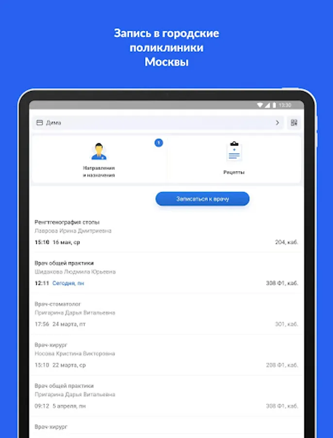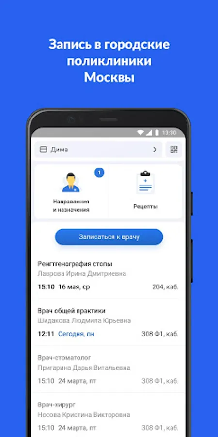 The EMIAS.INFO application provides an appointment with doctors in Moscow city polyclinics and access to their electronic medical records.