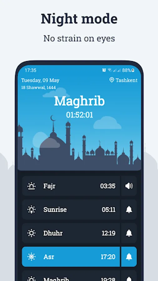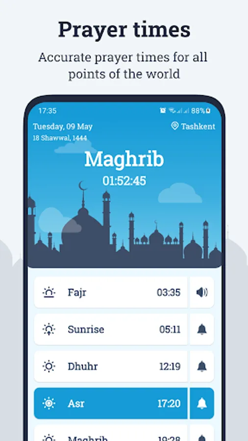 Our Islamic Prayer Times app is the perfect companion to help you manage your daily obligatory Islamic prayers with ease. Get the most accurate prayer times for any location in the world.You can set and customize reminder notifications for each prayer time.